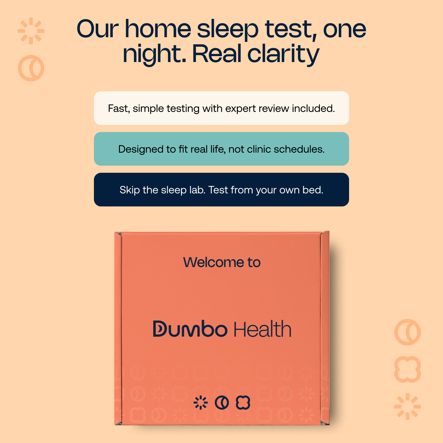 With Dumbo Health, sleep care happens entirely at home: no labs, no waiting rooms, and no surprise bills.