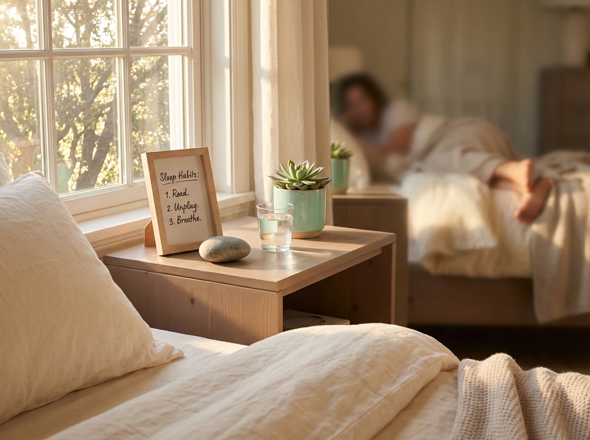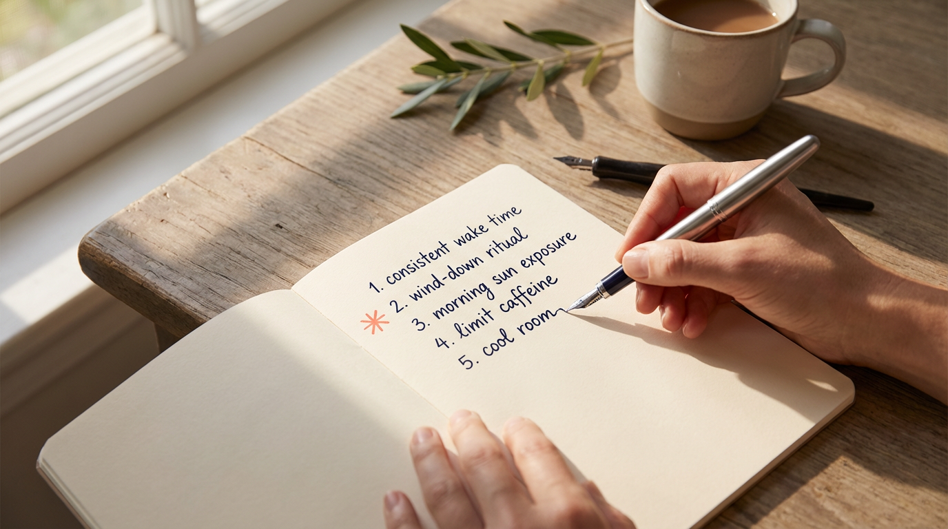 Write them down clearly. Don't just think about them. Put them somewhere visible: your phone notes, a sticky note on your mirror, the first page of your sleep diary. Make them real.